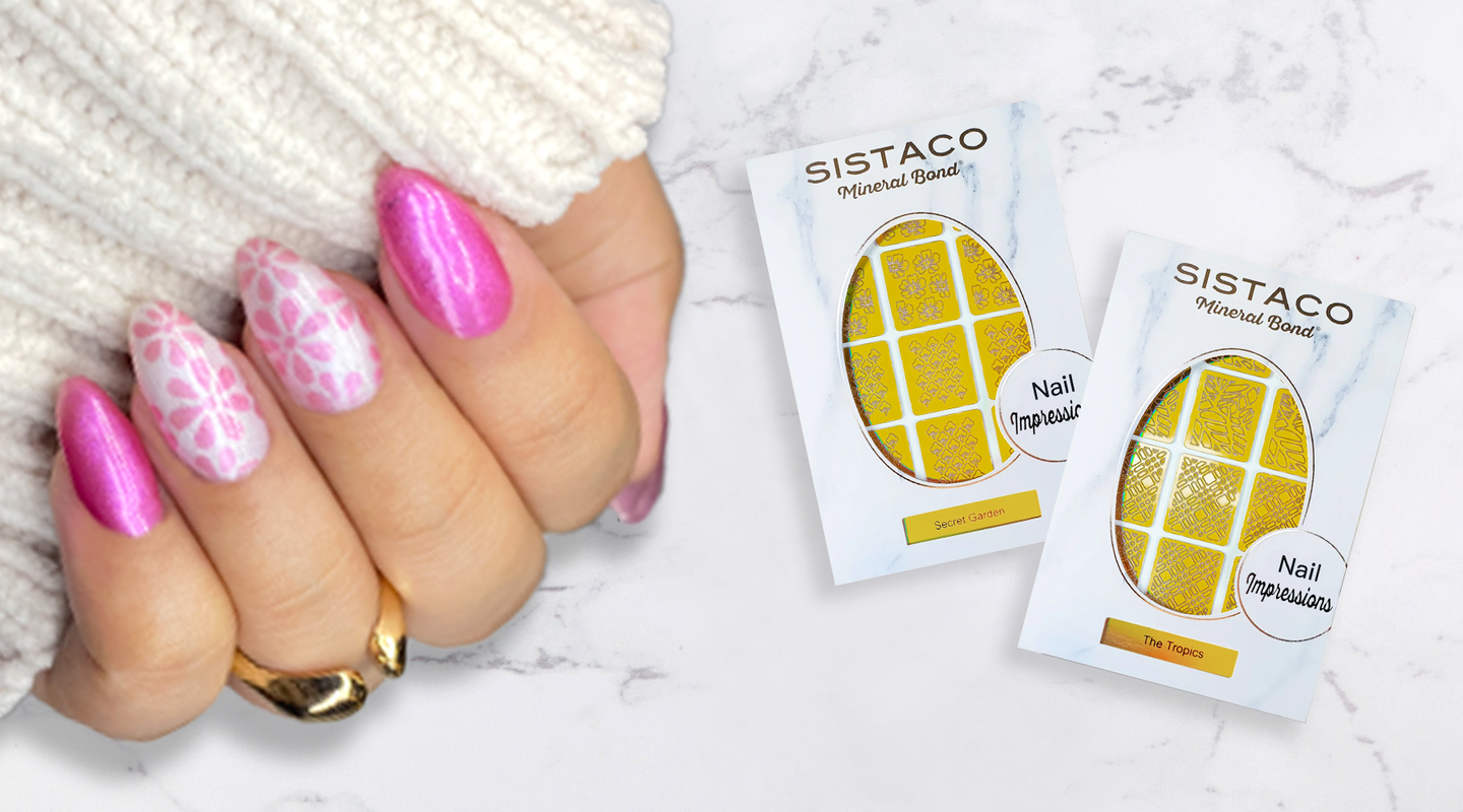 Finish off your nails with a cherry on the top. Add flair to your nail designs with our range of Embellishment” nail stickers. Choose our top selling ‘Love Blooms, Florets’, and beautiful nail stencils “impressions” ‘Butterfly Garden’.