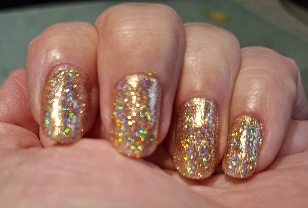 Ember is such a fantastic color. It is so colorful and can go with pretty much anything. Its base color seems like a reddish maroon color. This is a chunky glitter style that catches the light at every angle and just sparkles ✨. It is beautiful. When I have worn it I’ve gotten so many compliments and they can’t believe that I did it myself! The Sistaco system is so easy to use