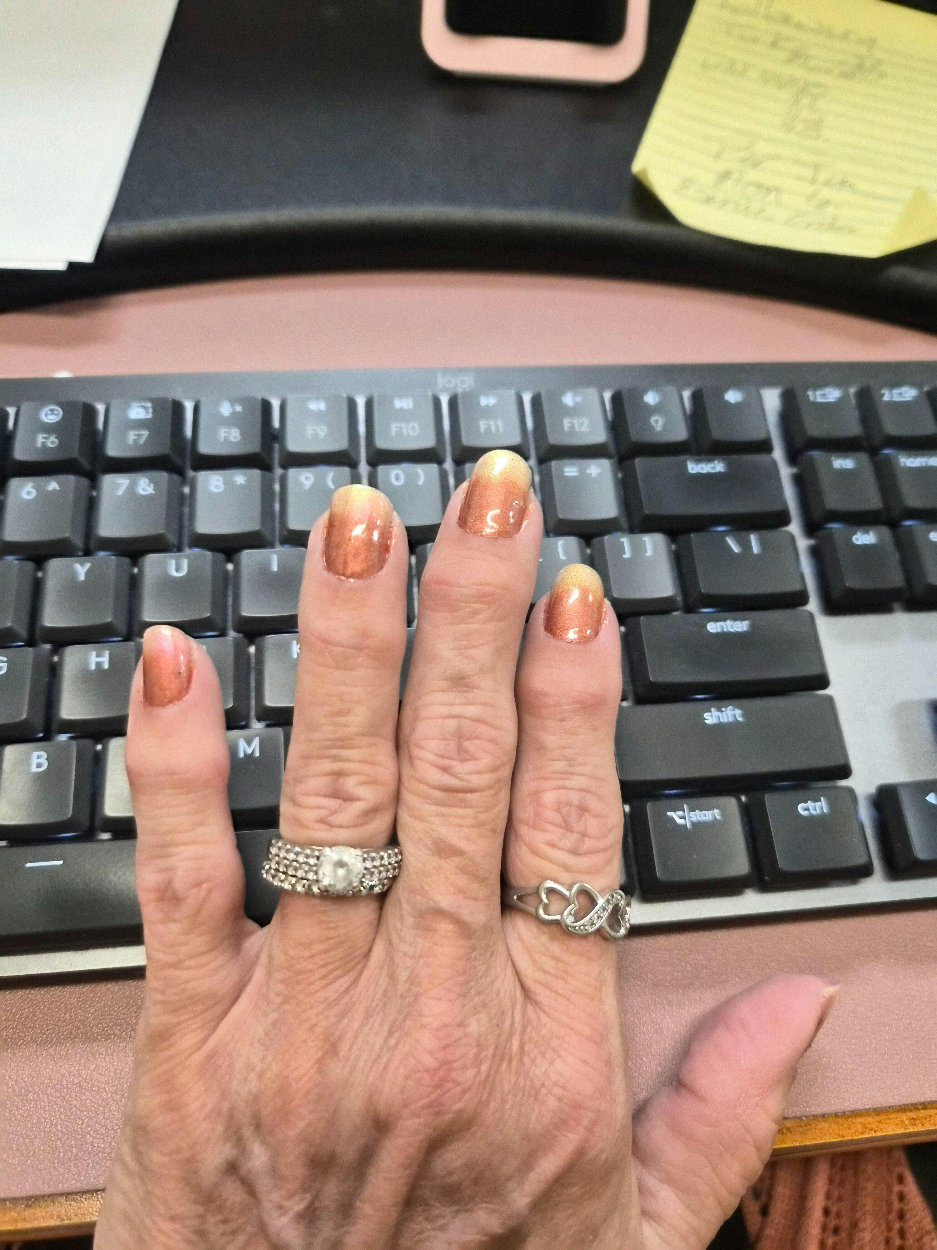 I am very much in love with Glazed Donut, so translucent, yet totally changes any color you might put it over. I imagine a long relationship between the two of us. LOL. Desert with Glazed Donut on my tips, applied classic.
