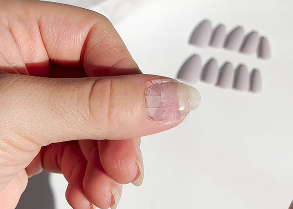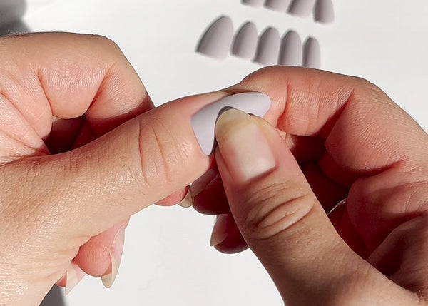 Start by thoroughly cleaning your natural nails using the alcohol pad provided. Afterward, gently file your nails to create a suitable surface for strong adhesion.