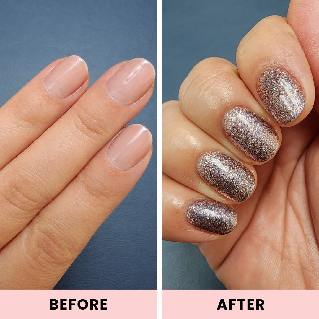 Love this kit and how easy it is to do at home and long lasting. Just past the two week mark on the first mani and still going strong.