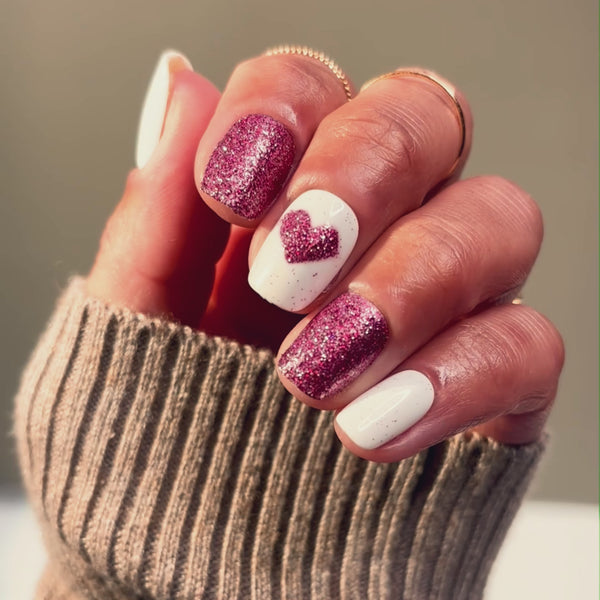 This softly shimmering set pairs a clean white base with delicate pink sparkle accents for a look that feels light, fresh, and quietly romantic. The subtle heart details add just enough charm without overpowering the design perfect for everyday wear with a soft, feminine touch. Effortless, flattering, and beautifully understated.